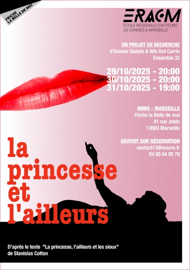 Parfois il arrive que la princesse se rendorme, que Pimprenelle s’éveille, et consciente de son drame ; se voyant encombrante elle finit par s’excuser de vivre. C’est cette lutte contre l’ailleurs autant que l’embrasement entier avec lui même que nous avons voulu travailler en choisissant le texte La princesse, l’ailleurs et les sioux de Stanislas Cotton.
